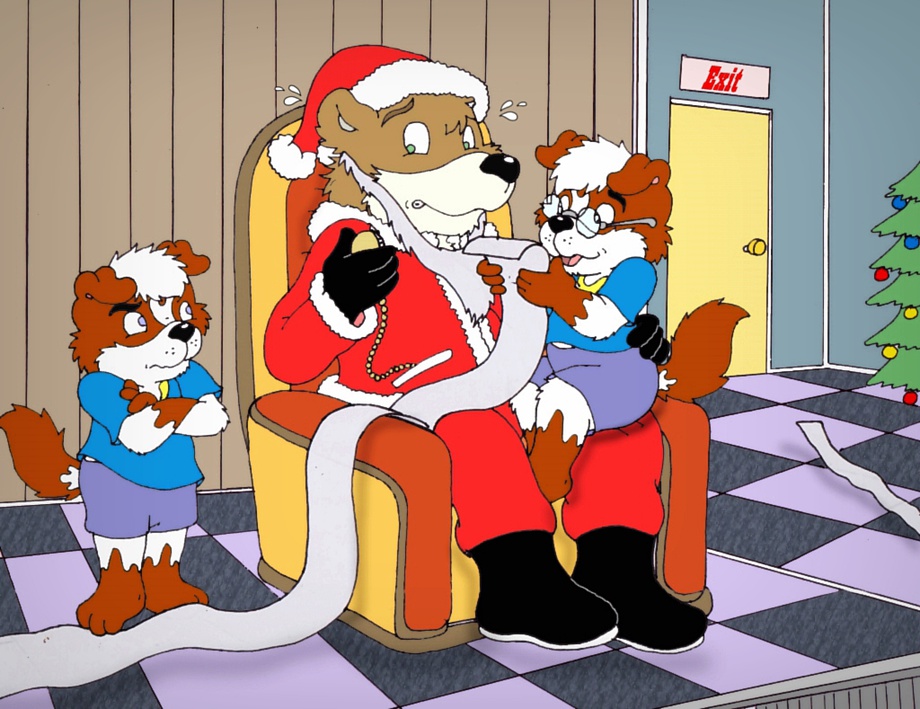 In this funny school play, Sammy and remi are playing the role of Santa's deers and Loupy is...you know, Santa,off course! The room was full of parents who came to see the cub's school play!And as soon as the play began, Remi had an accident with his costume...especially the back of his costume!Showing his diapered bottom to everyone!Causing the audience to a non-stop laughing!