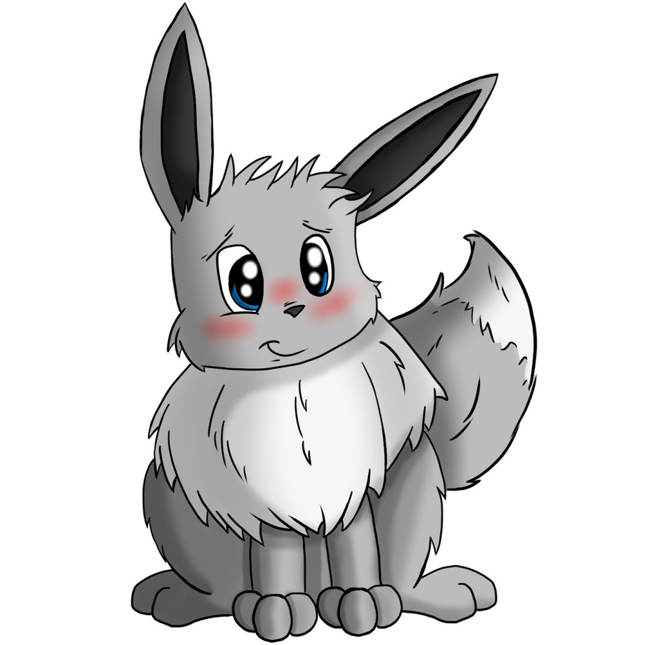 Early design for a shiny eevee character, named Raincloud (Rain for short), from a story that I'm working on. At this point Rain's supplanted the prior main character - a pikachu - because of the more interesting ideas that popped in my head as I looked up eevees and their depiction in the various pokémon media. Particularly in the Trading Card Game and the Manga.