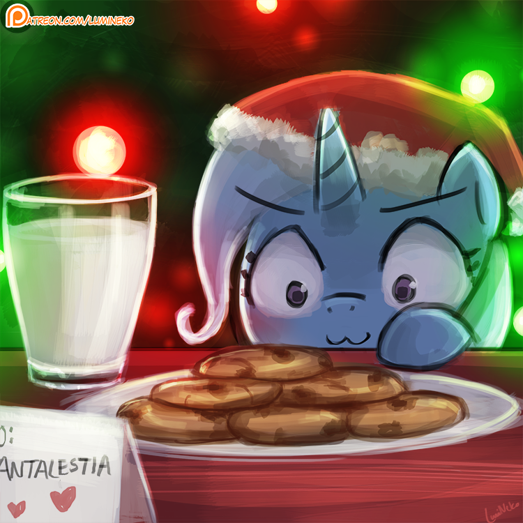 naughty? do you know how crappy santalestia's diet is because of those cookies? she starts the night at 120 pounds and at the end is over 4500. it takes her all year to get back in shape. trixie is doing her a favor.