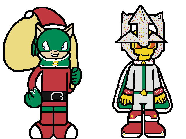 Second Pic: Nightshade and Luminous are dressing up for Chirstmas, it looks like Nightshade's ready to steal all the Christmas presents and decors just like Dr. Seuss's the Grinch does in How the Grinch stole Christmas, while Luminous dressed up like a Christmas Star to put on the tree, and his cape also resembles a Christmas Tree too! He even has his helmet with Christmas decors. ^^