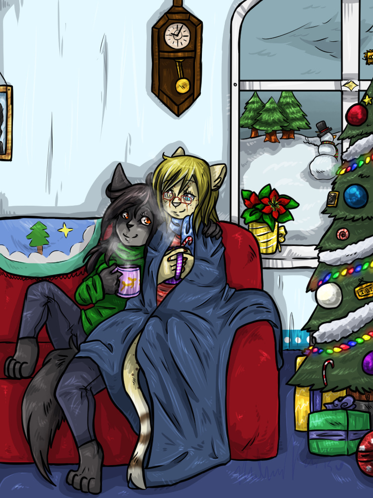 Kaitlyn and Jordan get back from caroling! Despite being half tundra lion, Jordan's fur is much thinner than her mom or sister's, and she can get pretty cold without realizing it. Luckily for her she's got someone dear to hold her close as they get warm with some hot chocolate.