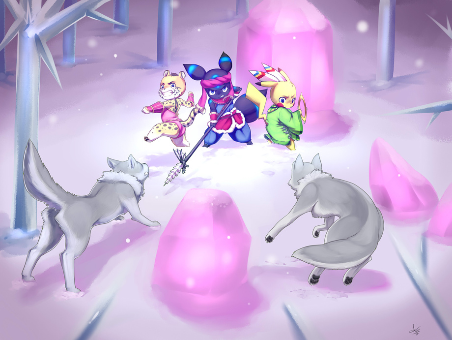 Firenor Farly and Piko playing in a more immersive version of Secret of Mana, each using the typical weapons I used in the original game the most for each char. Almost any time I think of this game this arctic wolf grind always comes to mind first, probably because it was one of my favorite places to grind in the first half of the game.
