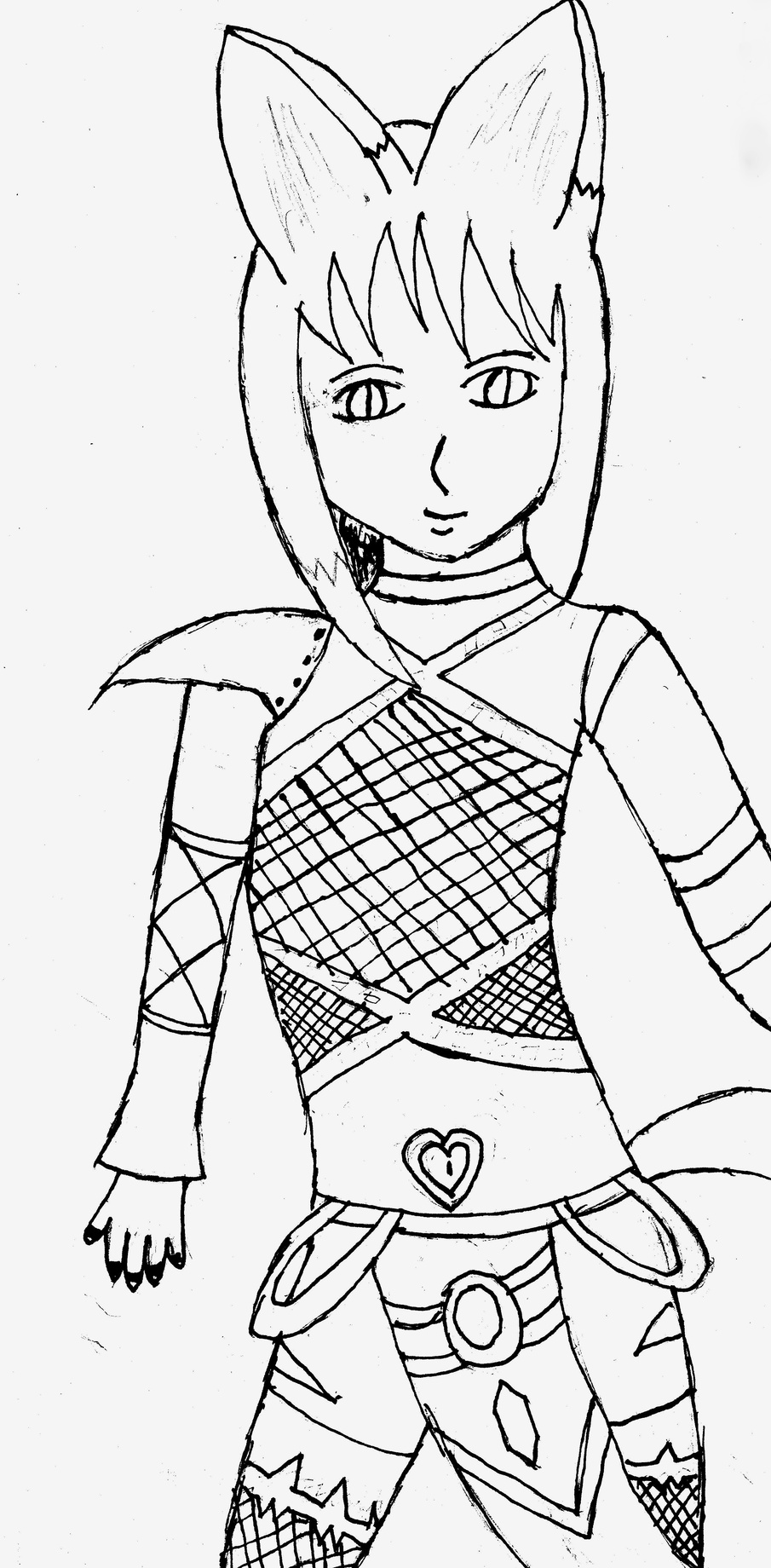 Appearance(kitsune/human): Human body with fox tail and ears(with purple at the tip of my tail and my ears), Long hair(Purple bangs), human eyes with purple iris, Tattoo: Heart on tummy ^-^