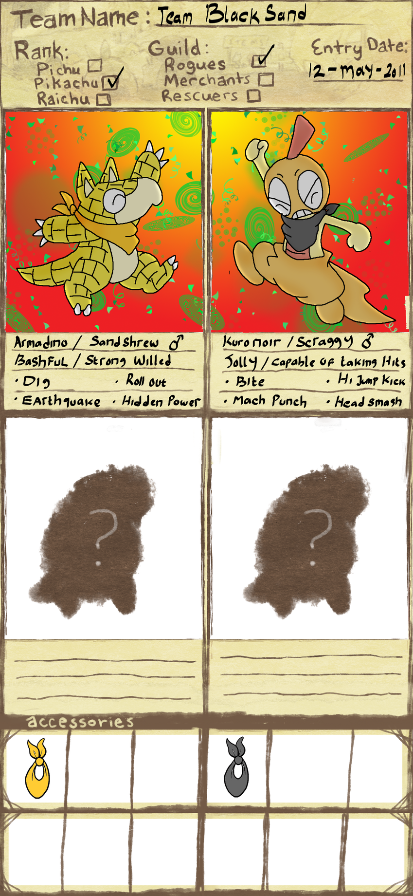 A new rogue guild explorer consisted of Armadino the Sandshrew and Kuronoir the Scraggy. Both worked together to make each of their dream come true XD