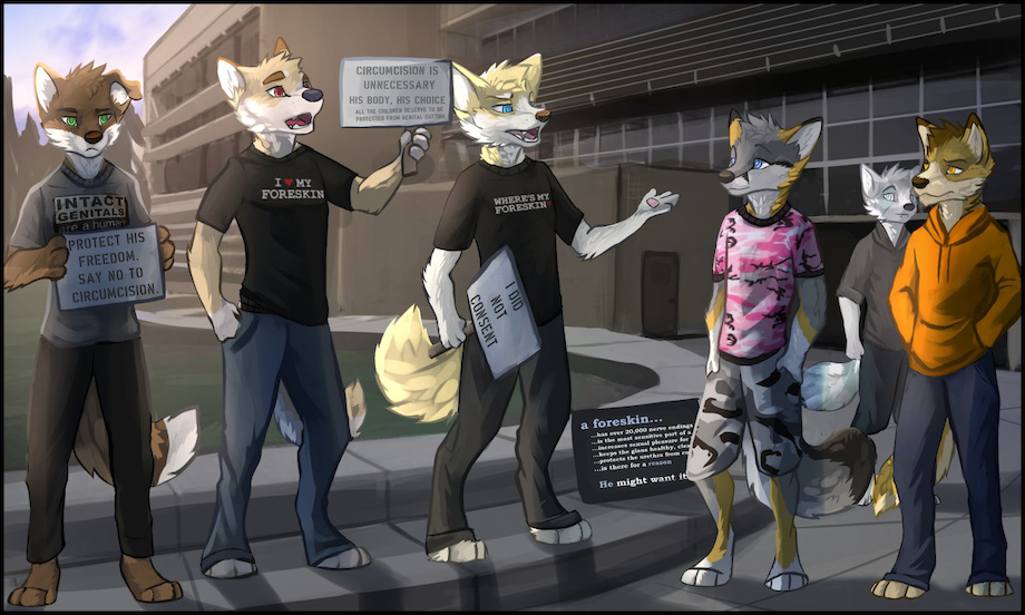 Consider the following: Circumcision reduces masturbation in males and females by a fair amount of time. So you can concentrate better on more important stuff. Many diseases are transferred through sex. If that is just reduced to a necessary minimum, it'd be better and STDs wouldn't spread as much anymore. Cool art btw ;) I m wondering about making a similar picture, in which the animals are in favor of it. XD