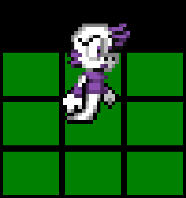 sometimes carries a purple staff with a white eliptic gemstone on the end
