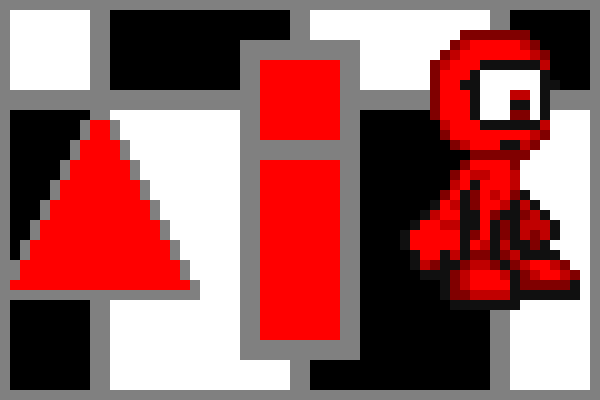 Red or "Aka" is a minor villain in the Q series. They are young, impulsive and stupid. They ran away from their parent with Blue and Green after they all agreed to do the same. Black also left later but to bring them back home. To do this Black must build a world to battle their siblings' worlds out of dots, lines, shapes and the things they can make out of them.