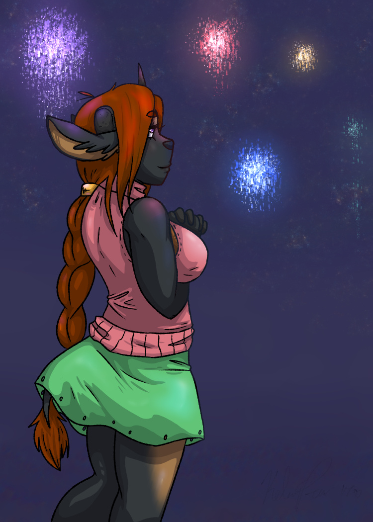 Adiva goes to watch some fireworks. Mostly a brush and materials test in clip studio.