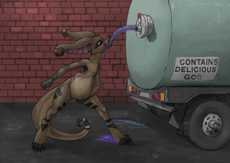 Notorious for stealing from shipments around the city, this little guy discovered a truck with an ambiguous label. It say's delicious, how could he resist?