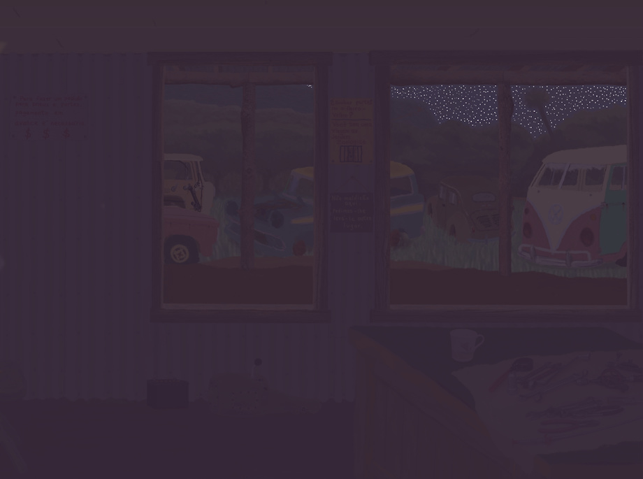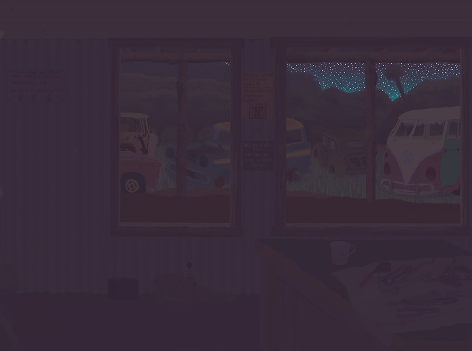 If you go through the whole playlist, and listen to at least a portion of each song, with the song and lightning static turned down low, and the night cricket singing turned up a bit, while you are flashing the lightning between the two pics, it will begin to feel like you are actually right there in Sy Aardwolf's shop watching the lightning light up the sky...like how radio stations play one song after another. I know it began to feel that way when I tried it.