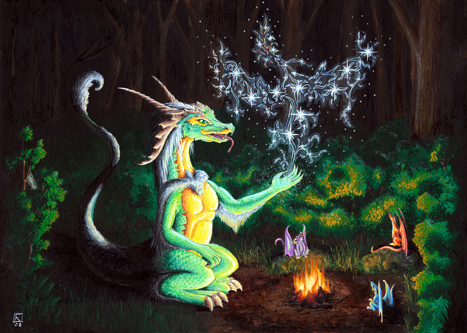 meet Kadath, the young forest dragon, hawing fun shaping mana to entertain his little dragonet friends after a long day spent hunting and more generally fooling around ^^