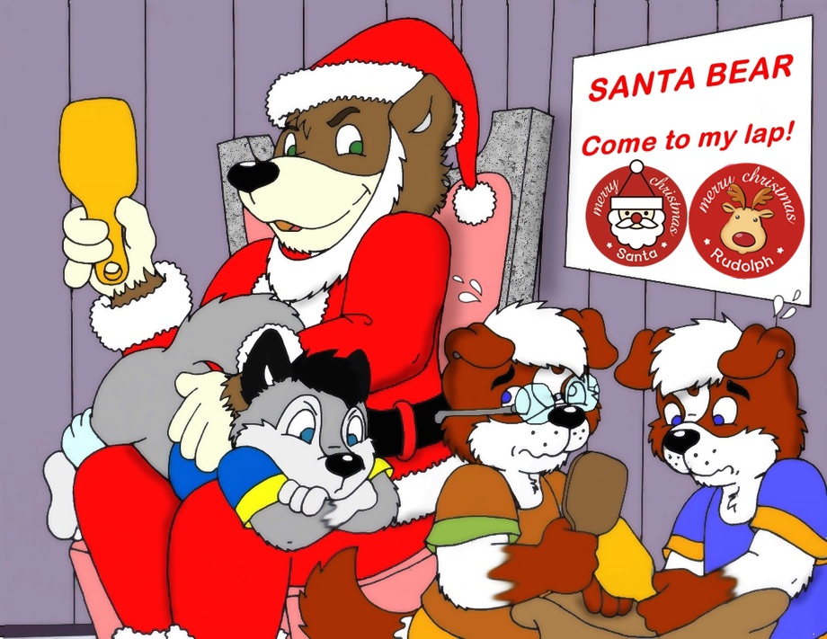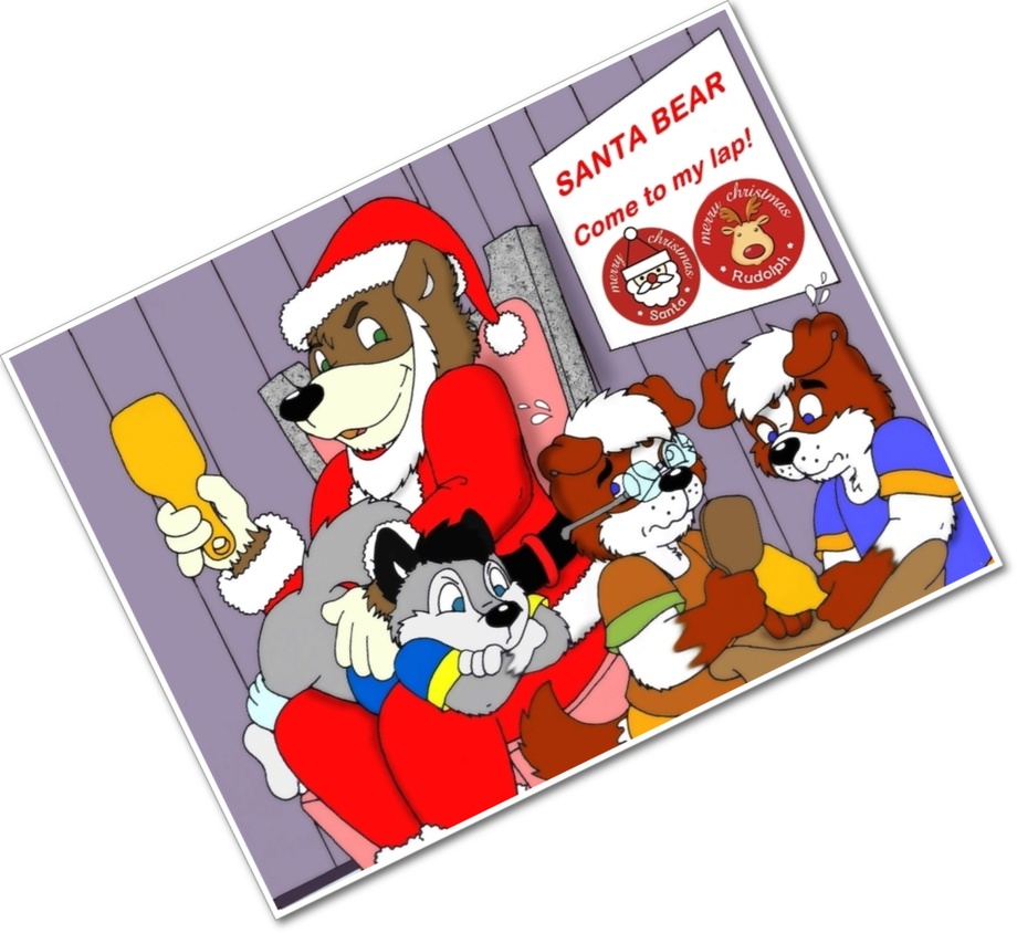 Tony the bear:"Hello cubs!"I hear too much of all of you during this whole year!You first!Come to my lap,naughty little wolf!"