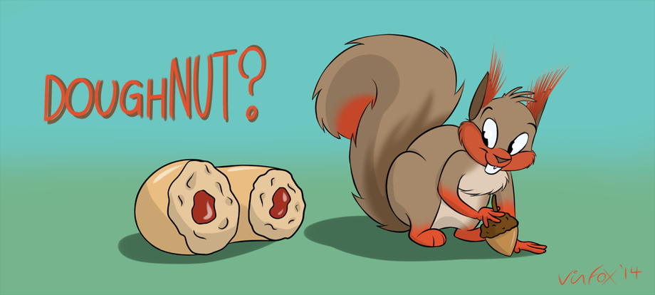 That look of the squirrel.. I think he plans something naughty with that doughnut.. >w>