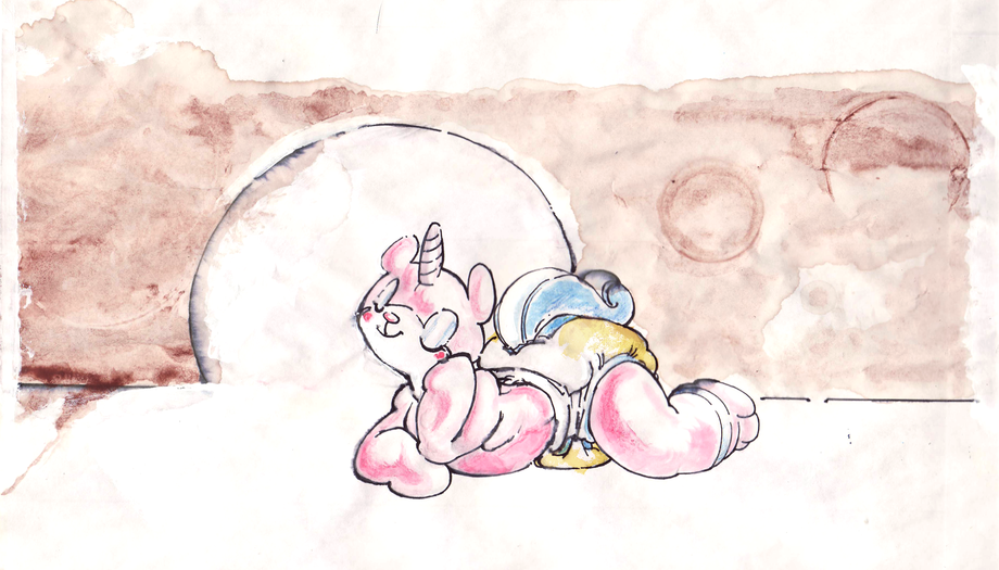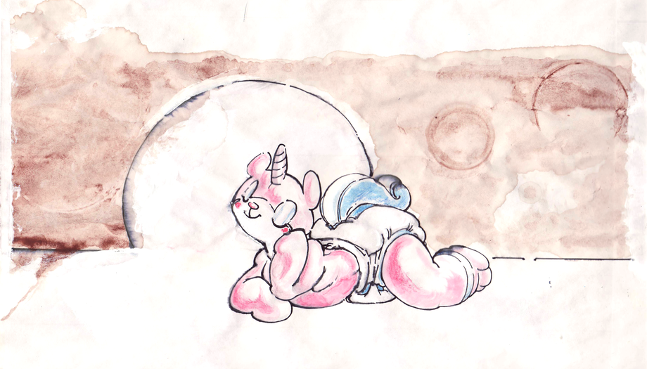 Has a clean and used version. Made with acrylics, coffee, ink, and some digital for the wet version.