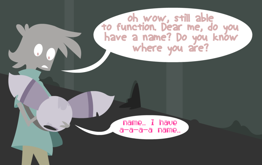 Also, I feel pretty bad for Eeple. Apparently, Eeple still persists in existing, though the former owner (Andrew Telly, someone that Eeple apparently really enjoyed the company of) is quite likely dead and gone, or at least far too old to really even take care of Eeple, and now has to put up with Josh. Eeple, in the end, just wants to delete those old memories, but apparently cannot.,